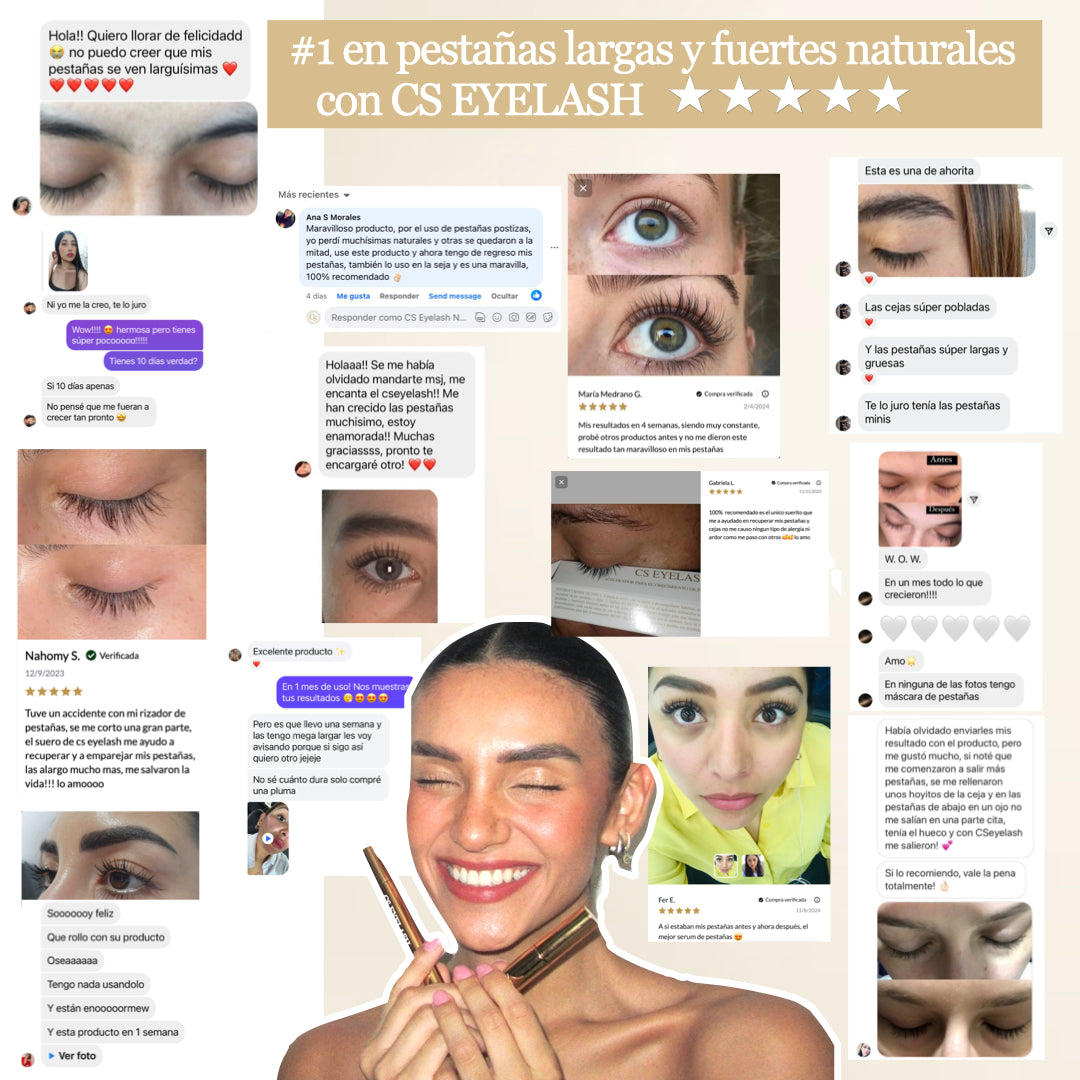 Transforma tu mirada con cs eyelash nuestro suero intensivo para crecimiento de pestañas y cejas. Su fórmula con péptidos, vitaminas y extractos naturales estimula el crecimiento visible en pocas semanas, fortalece desde la raíz y te ayuda a lucir una mirada más intensa y saludable.